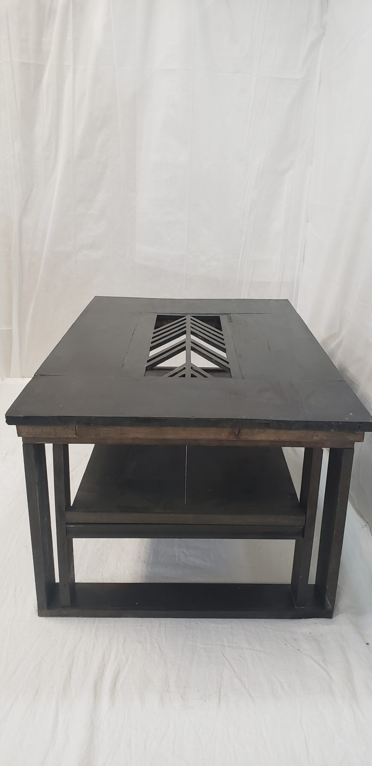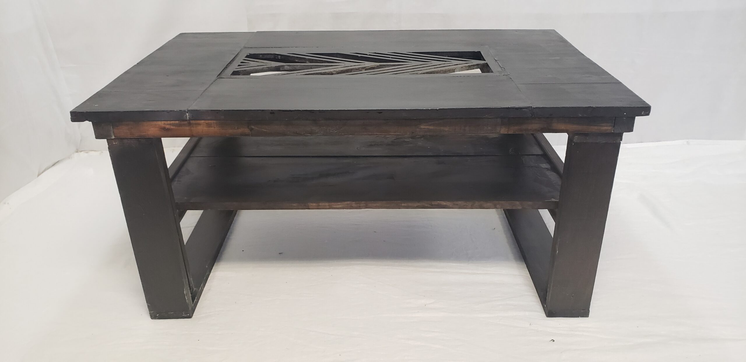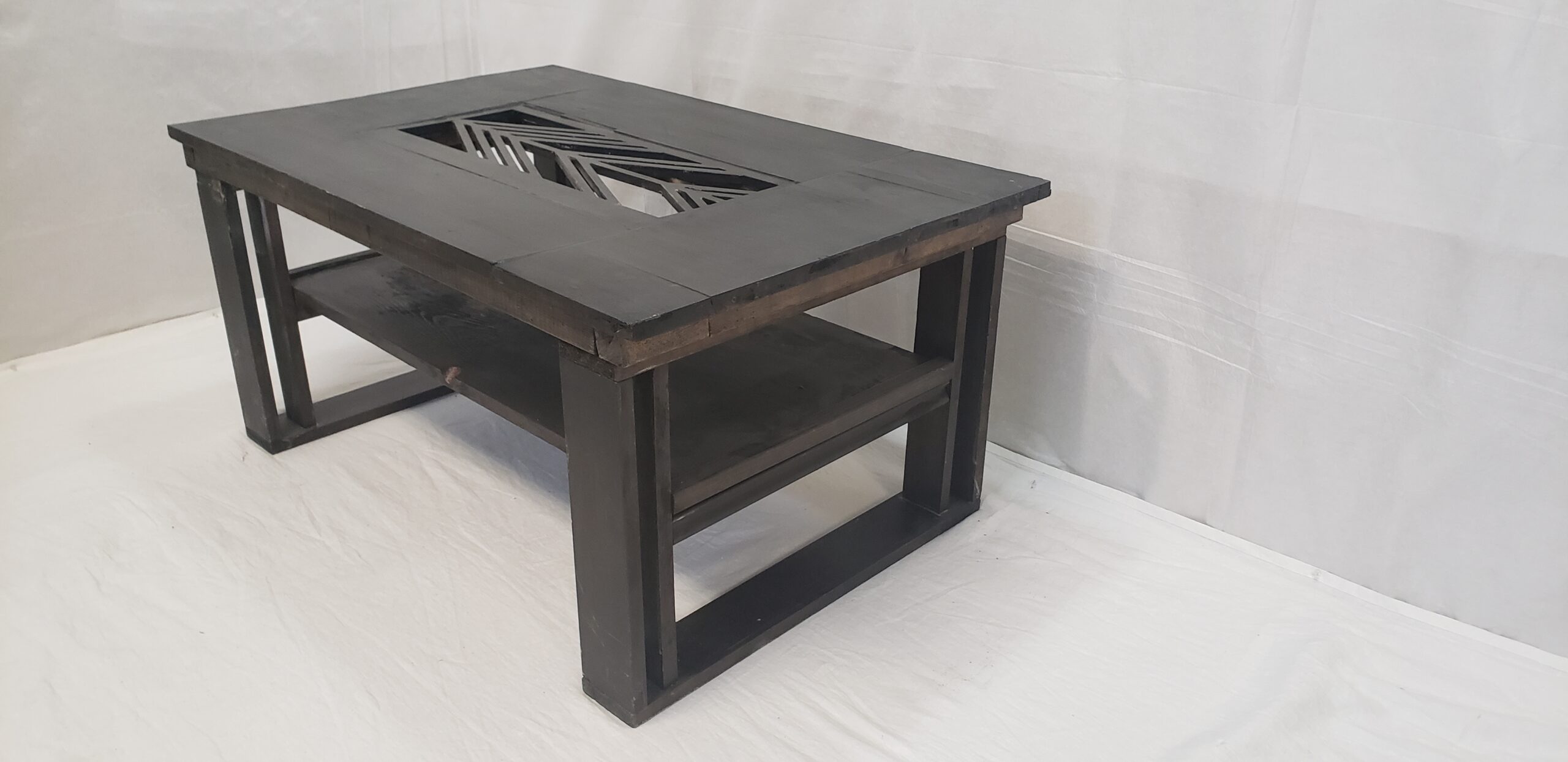 Handcrafted using repurposed wood, the CERCA table gives an artistic rustic air to your living space. The dark stain brings out the visibility of the wood & 39natural grain. The 40x19 tabletop has an industrial- looking grate inlay, and the table’s lower tier is ideal for staging a display.