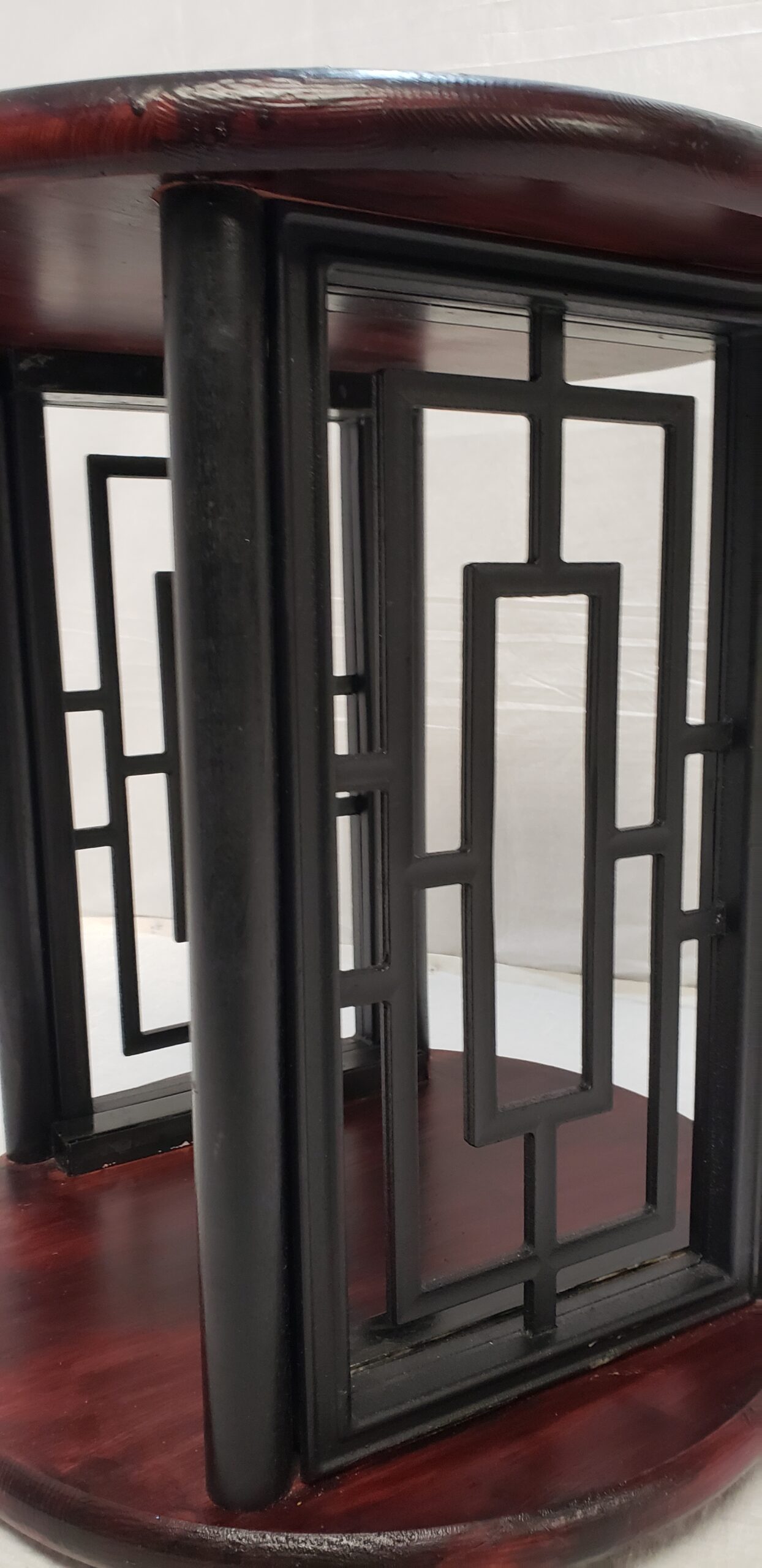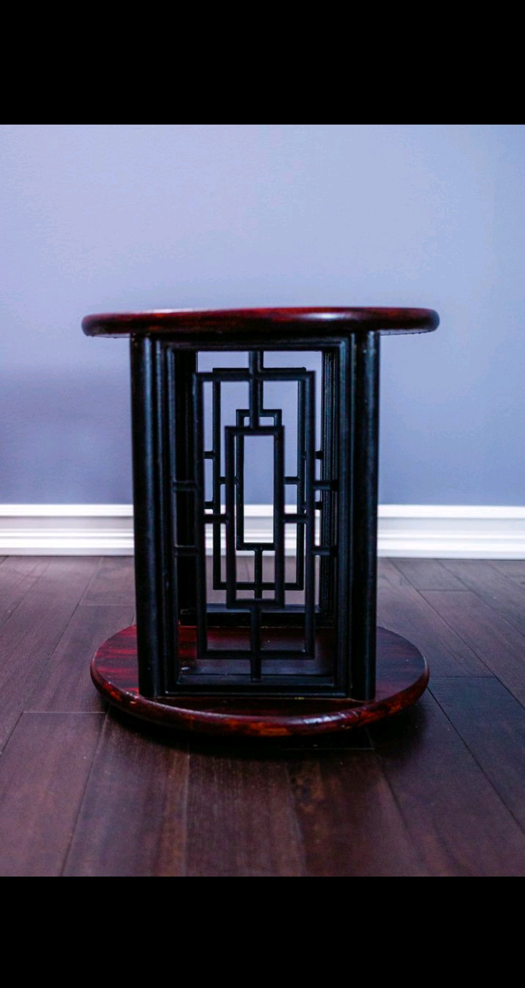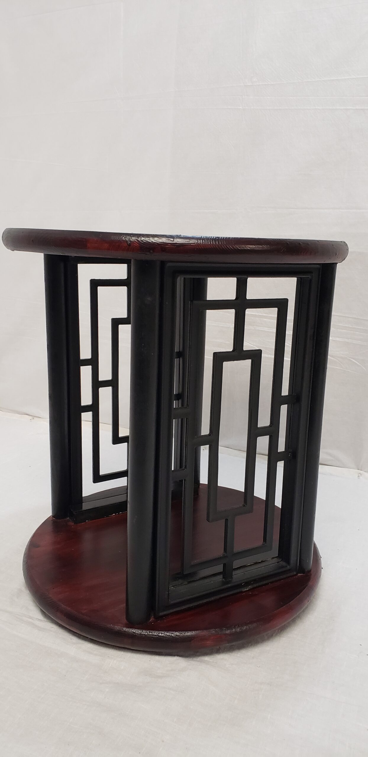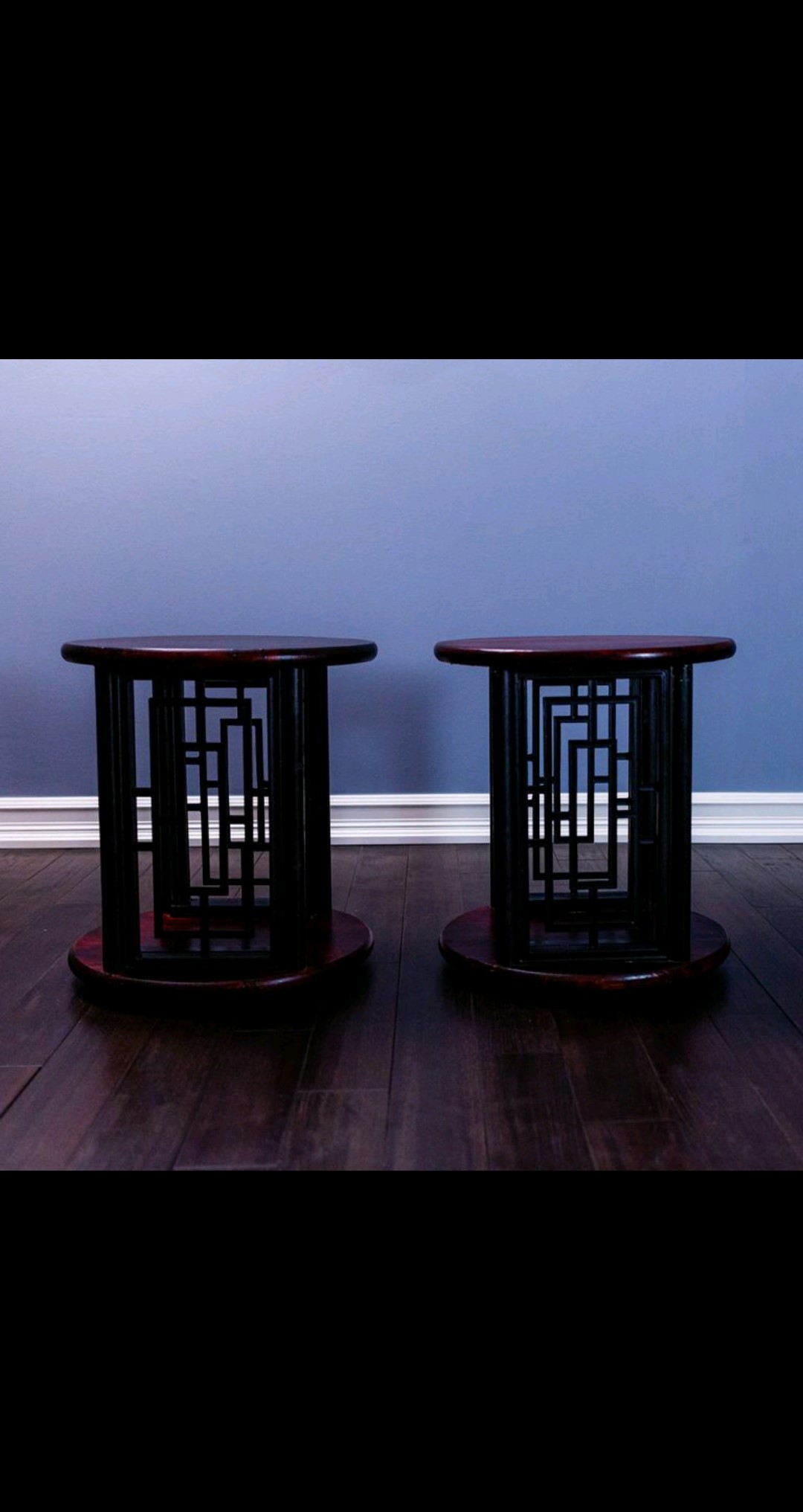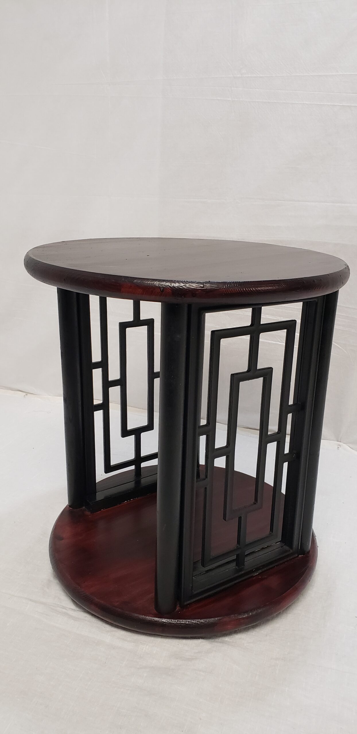 The handcrafted IRON GATE set of tables is made from pine and finished in an elegant Bombay mahogany stained. The collection 39 title flows from the cast aluminum decorative grills that give the tables an interesting flair. TWO AVAILABLE. SOLD AS INDIVIDUAL PIECES.