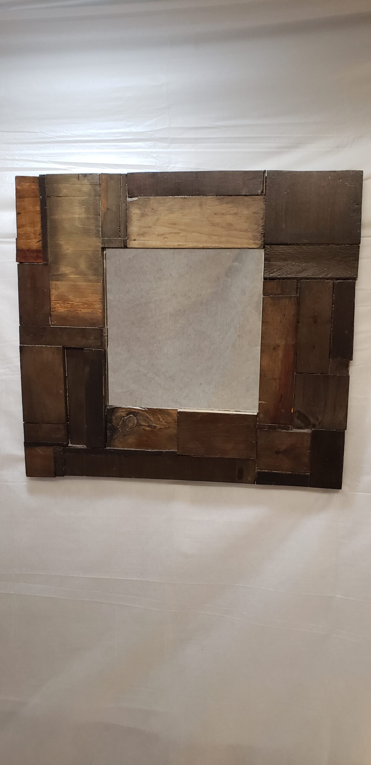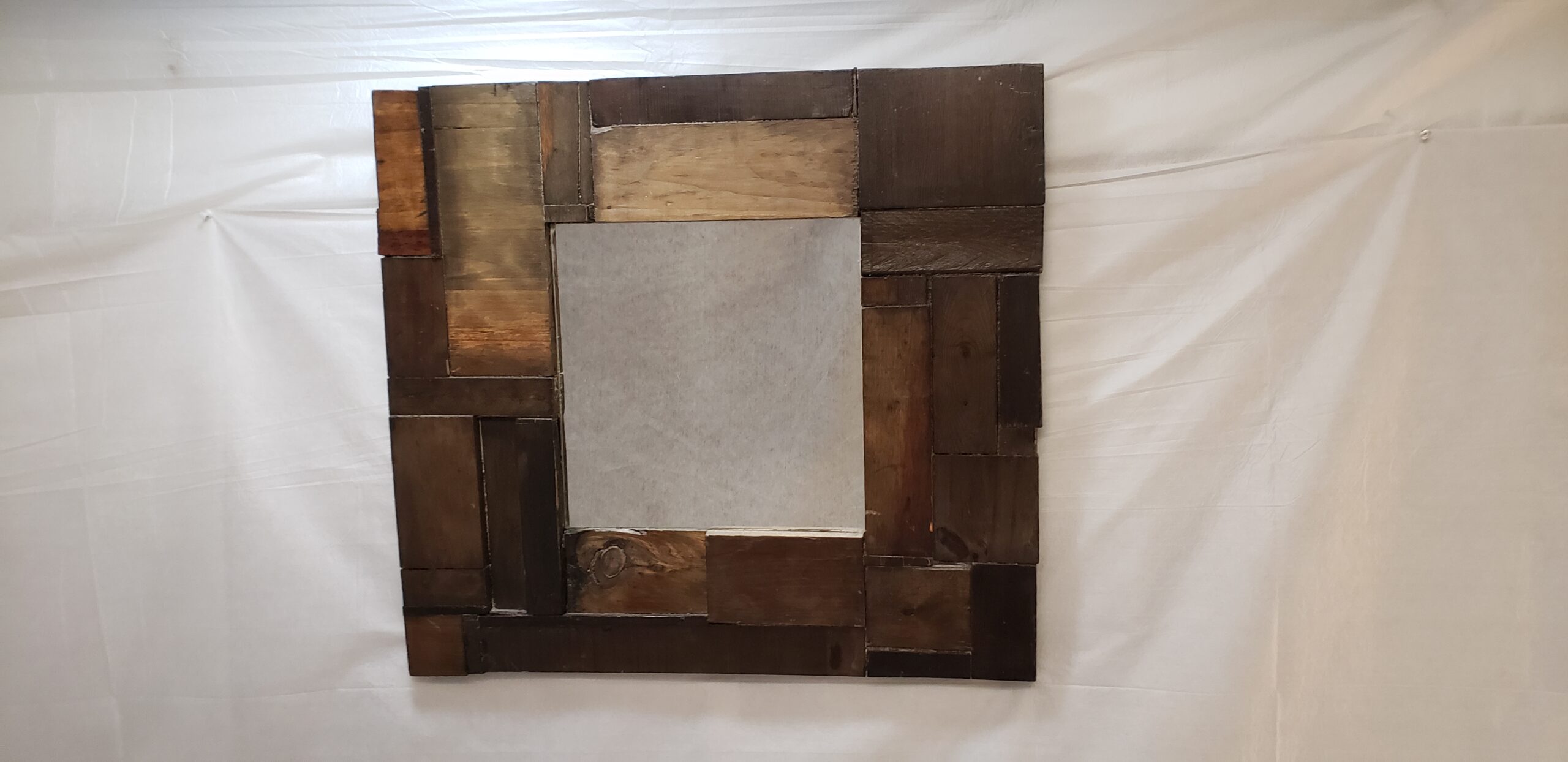 MOSAIC PUZZLE is a set of rustic mirrors that celebrate woods, textures, depths and colour. Each mirror is handcrafted from varying pieces of wood that differ in shape, size and species. The pieces are finished with a natural stain and arranged to form a single piece of wood. Mosaic puzzle mirrors come in varying sizes from small (25″x 22.5″) to extra large (63×34).